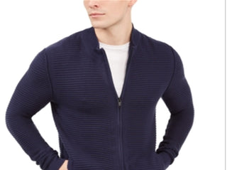 Alfani Men's Textured Zip Front Cardigan Blue Size Medium