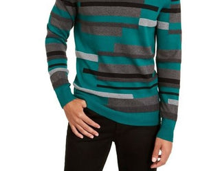 Alfani Men's Textured Striped V-Neck Sweater Green Size Small