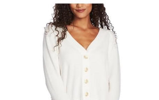 1.STATE Women's V-Neck Cardigan Sweater White