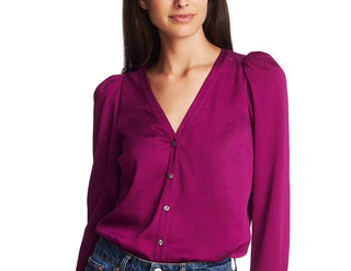 1.STATE Women's V-Neck Woven Top Purple