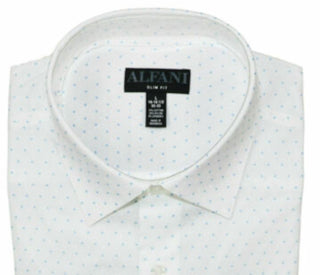 Alfani Men's White Geometric Collared Slim Fit Dress Shirt White Size 16.5- 32/33