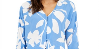 Alfani Printed Tie-Front Blouse Blue Size XXL