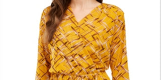 Alfani Women's 3/4 Sleeve Printed Tunic Yellow Size Petite L