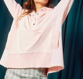 Bucketlist - Solid Blushed Knit Oversize Henley Top