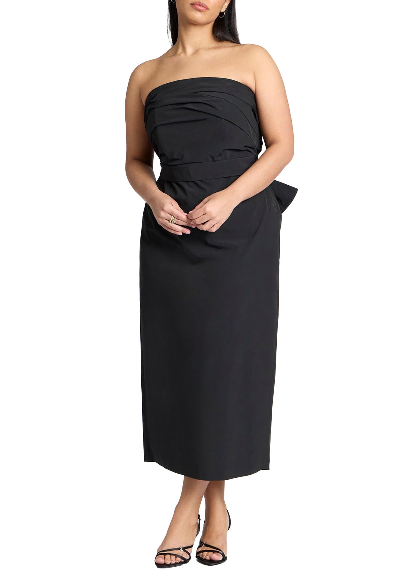 ELOQUII Women's Plus Size Pleated Bodice Bow Detail Dress - 14, Black Onyx