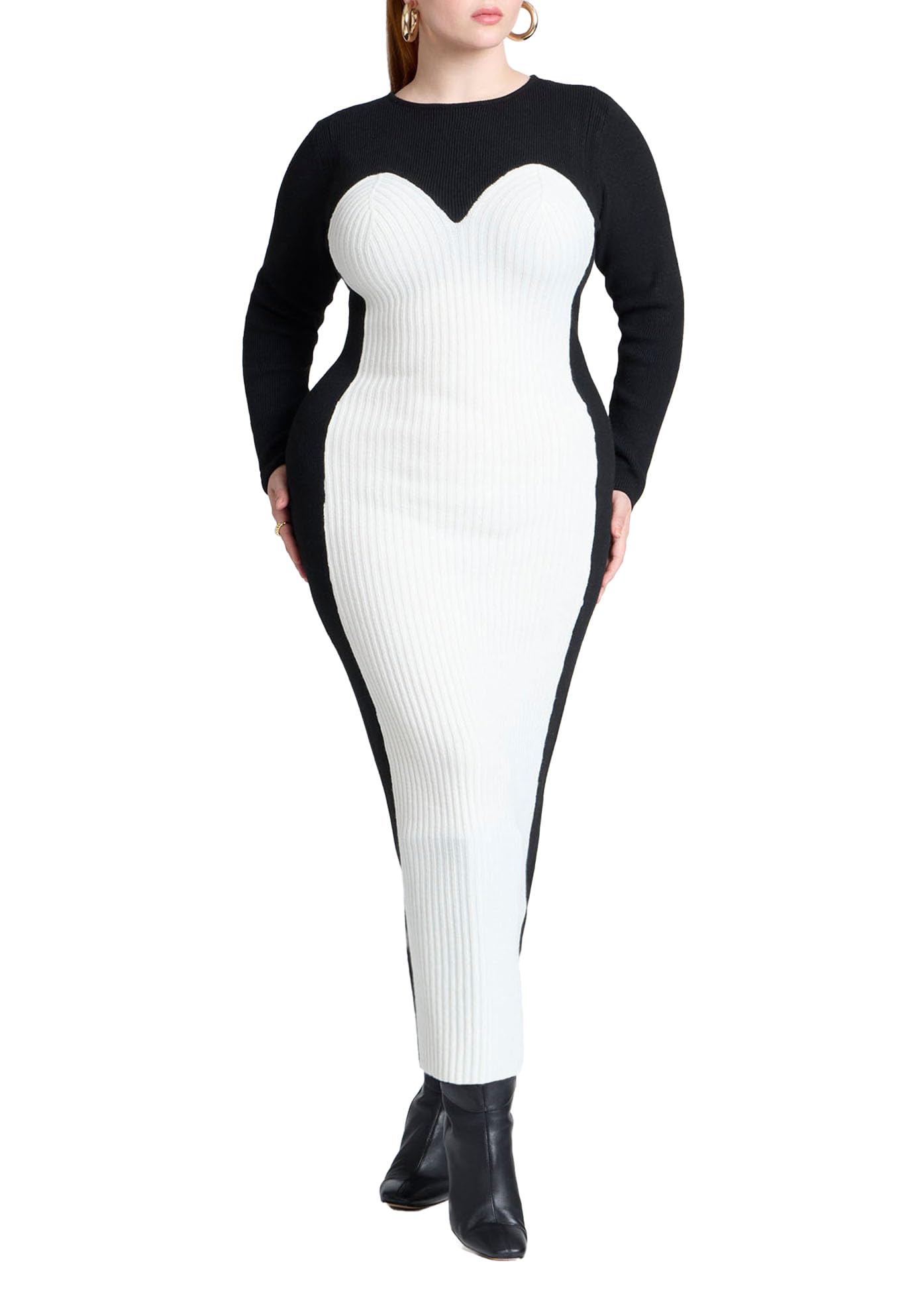 ELOQUII Women's Plus Size Maxi Sweater Dress with Colorblocked - 18/20, Black and White