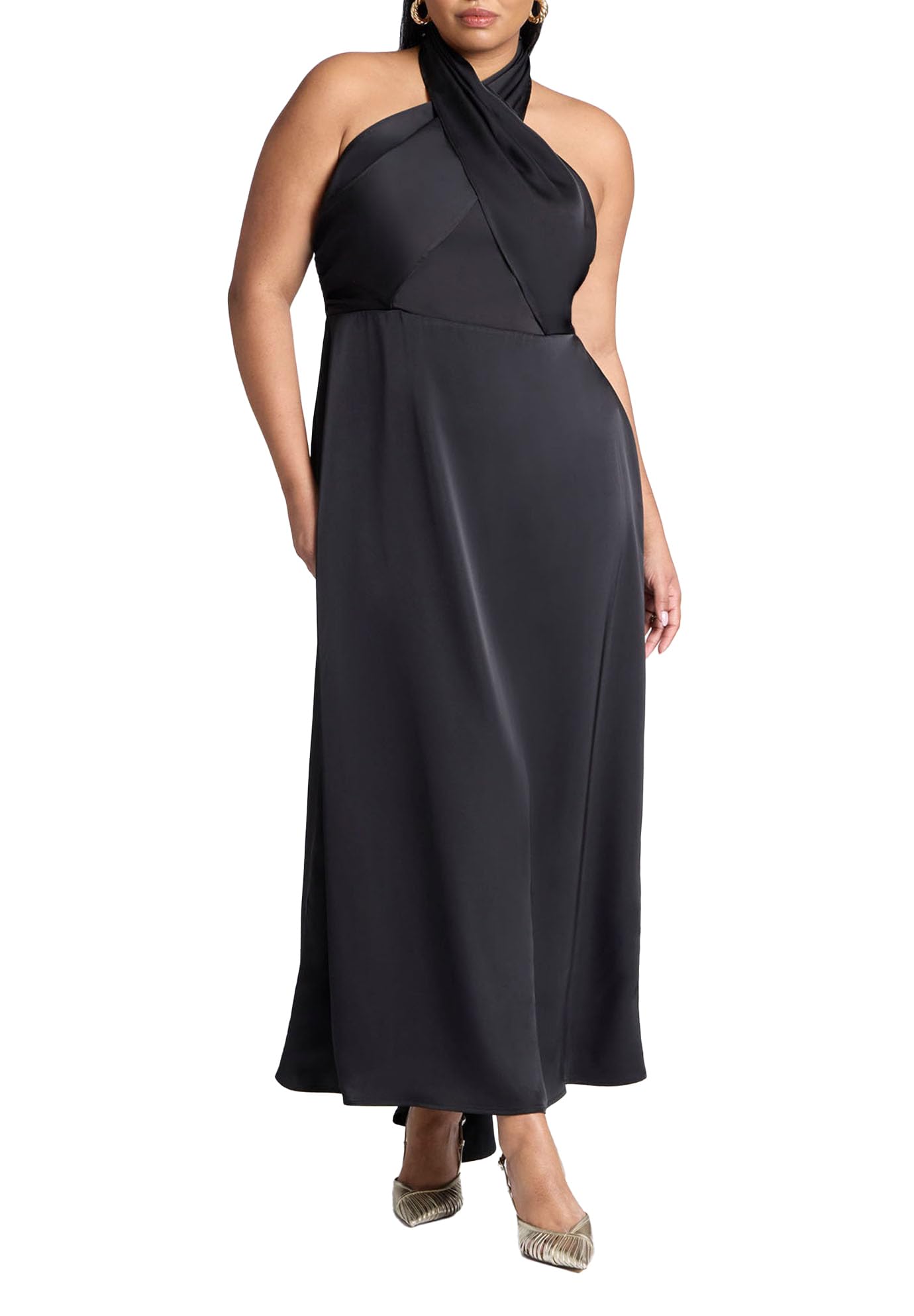 ELOQUII Women's Plus Size Halter Neck Satin Maxi Dress - 20, Black Onyx
