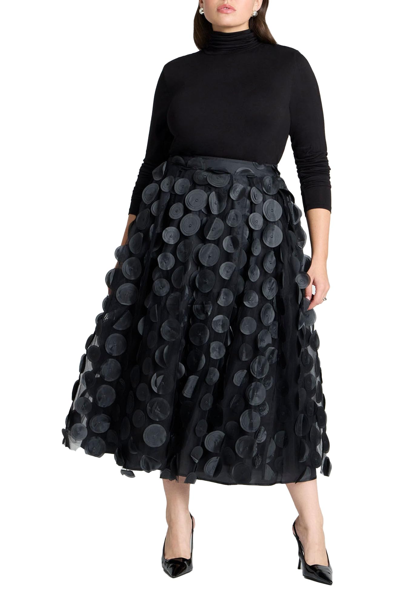 ELOQUII Women's Plus Size Dimensional Dot Full Skirt - 26, Black Onyx
