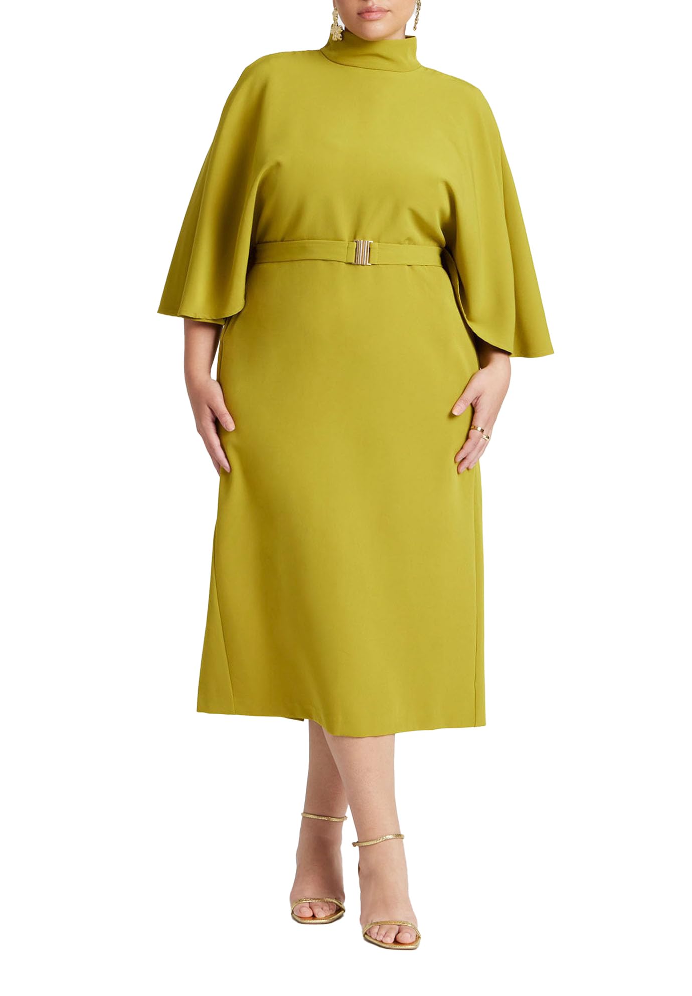 ELOQUII Women's Plus Size Cape Sleeve Belted Midi Dress - 16, Camp Green