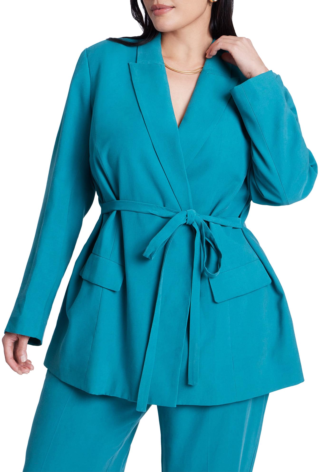 ELOQUII Women's Plus Size Tie Waist Soft Suiting Blazer - 20, Bayou