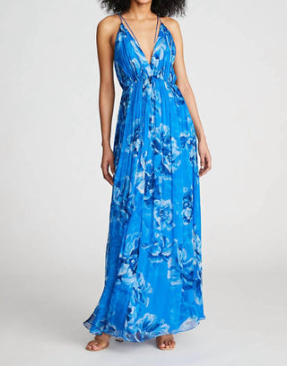 Halston Jersey Cascade Slit Gown, Size 4, Vermillion