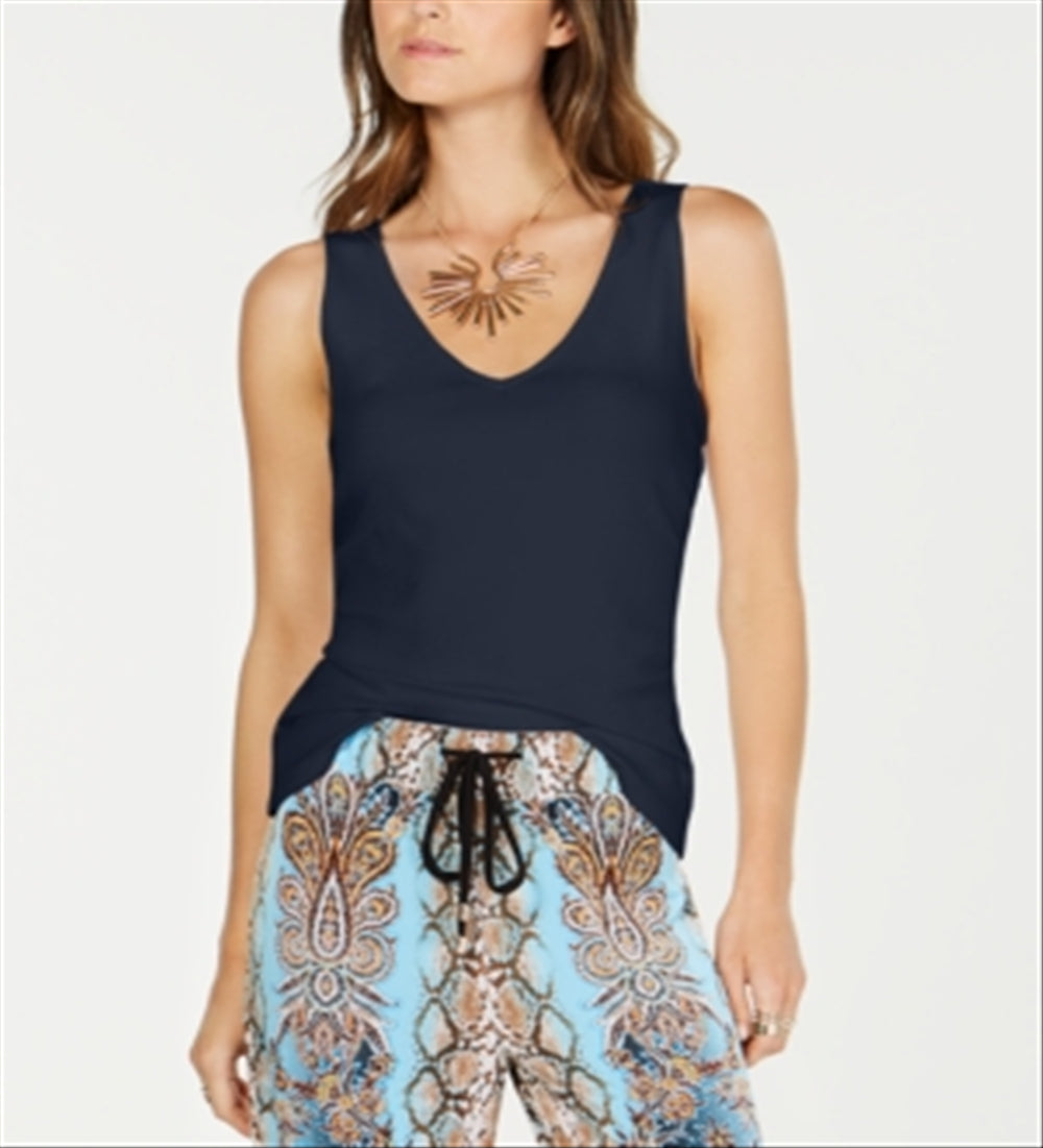 INC International Concepts Womens Sleeveless V Neck Basic Tank Top, Navy Size M