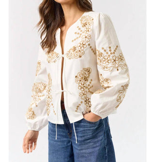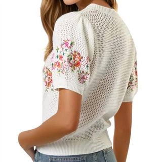 Lalavon - Susan Puff Sleeve Floral Embroidered Crochet Top