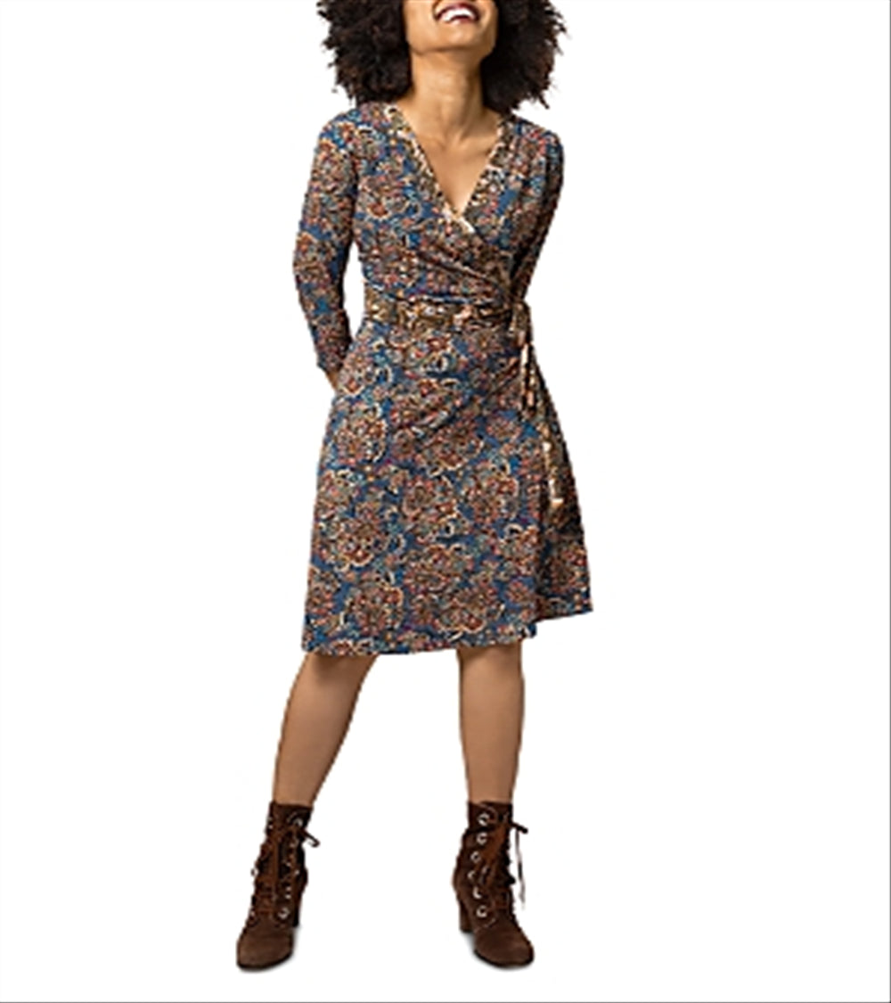 Leota Women's 3/4 Sleeve Amiya Midi Wrap Dress Gray