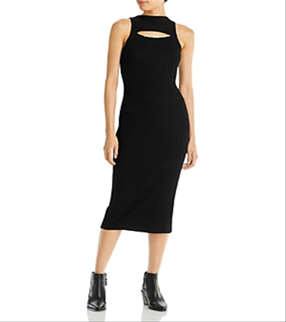 LNA Women's Liri Cutout Sleeveless Ribbed MIDI Dress Black Size Small