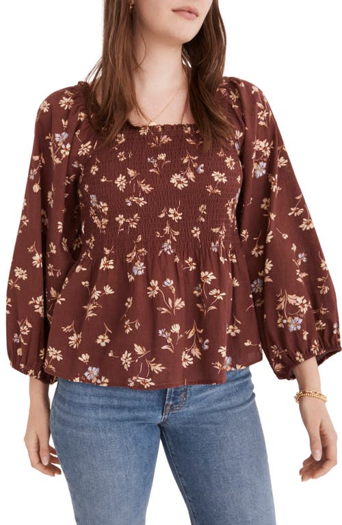 Madewell Lucie Smocked Square Neck Cotton Peplum Blouse - Dark Merlot