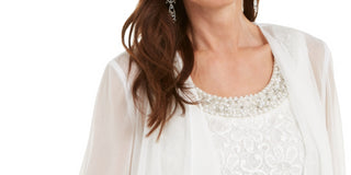 Nightway Women's Beaded Tank & Chiffon Jacket White Size Medium