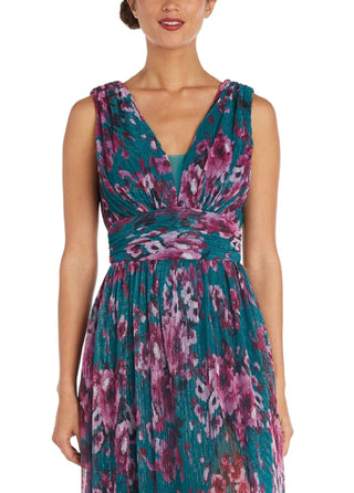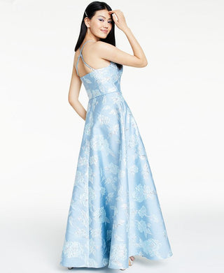 Nightway Women's Floral Print Pleated Gown Blue Size 8
