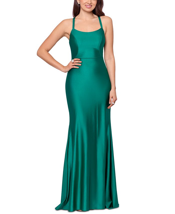 XSCAPE Women's Lace Up Satin Gown Green Size 10