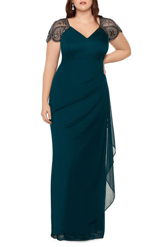 Xscape Women's Embellished Mesh Sheath Evening Gown Green Size 14W