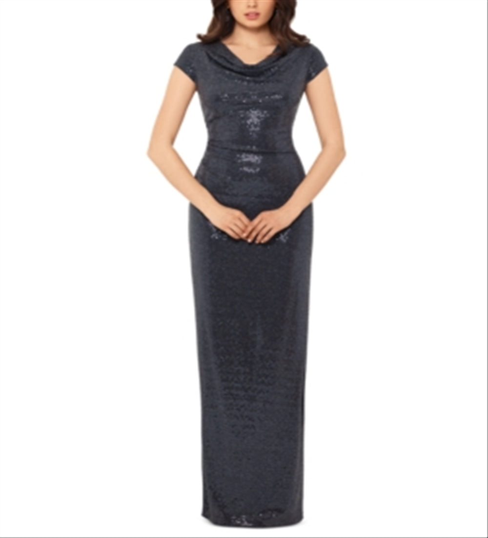 XSCAPE Women's Embroidered Sequin Short Sleeve Gown Blue Size 14