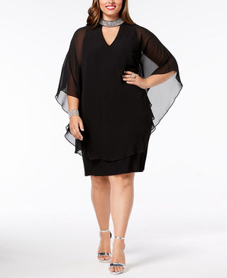 Xscape Women's Kimono Sleeve Halter Knee Length Sheath Evening Dress Turq Aqua Size 18W