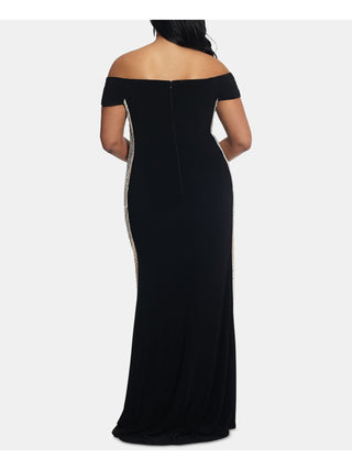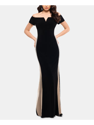 Xscape Women's Embellished Zippered Short Sleeve Off Shoulder Full Length Sheath Formal Dress Black ...