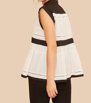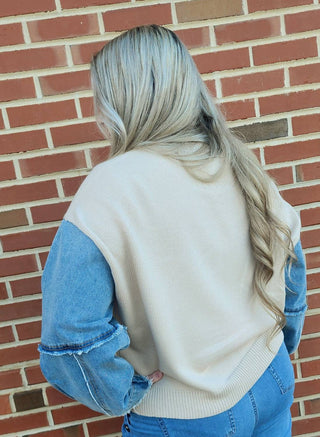 Anniewear - Denim Sleeve Contrast Distressed Sweater Top