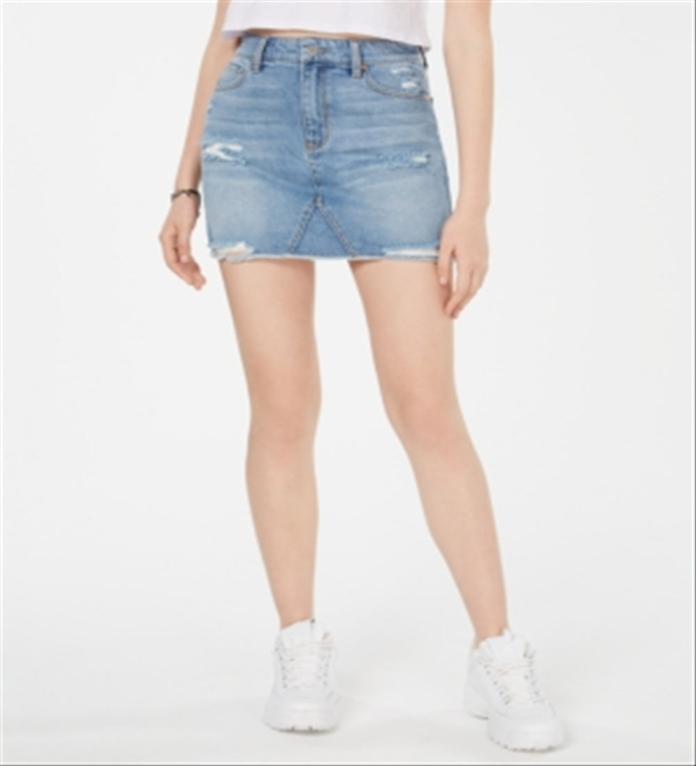 Tinseltown Junior's Ripped Denim Mini Skirt Blue Size 5