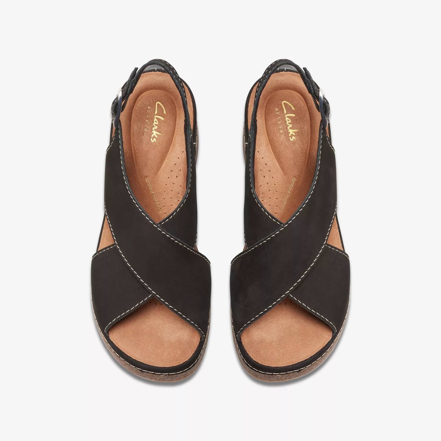 Elevate your style with the Women's Kassandra Step Wedge Sandal by Clarks, designed for both comfort and elegance. These sandals feature black nubuck uppers with an open toe and an adjustable ankle strap ensuring a secure, customized fit. With a 2.5-inch wedge heel and a durable, grippy TR outsole, these sandals are perfect for both leisurely weekends and city explorations. The molded suede Contour Cushion footbed offers lasting support with each step. Ideal for women who seek both style and comfort in medium width.