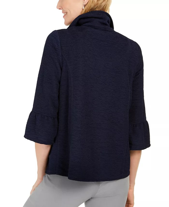 JM Collection Women's Textured Bell Sleeve Jacket Blue Size Small