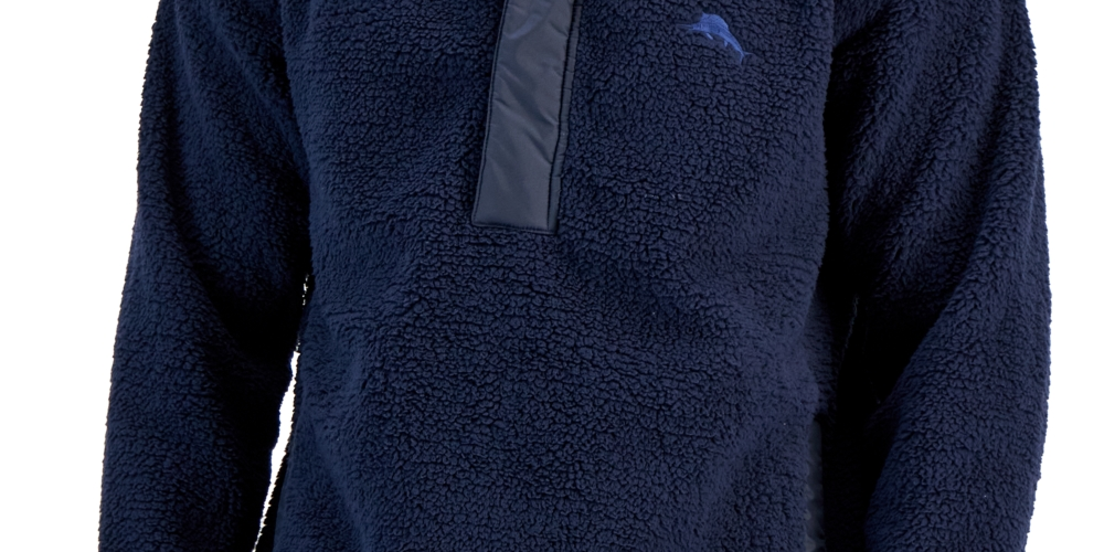 Perfect for layering| the Anchor Bay hoodie from Tommy Bahama is a plush| comfortable pullover with quarter-zip closure and nylon detailing.| Drawstring hood with quarter zip closure| Two side hand pockets | Logo at left chest| Polyester (100% recycled)