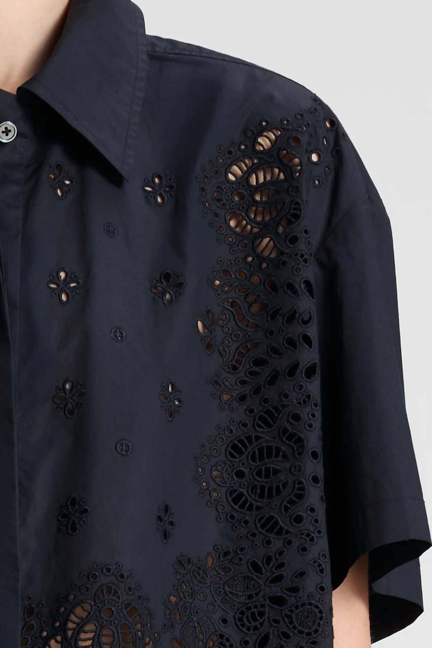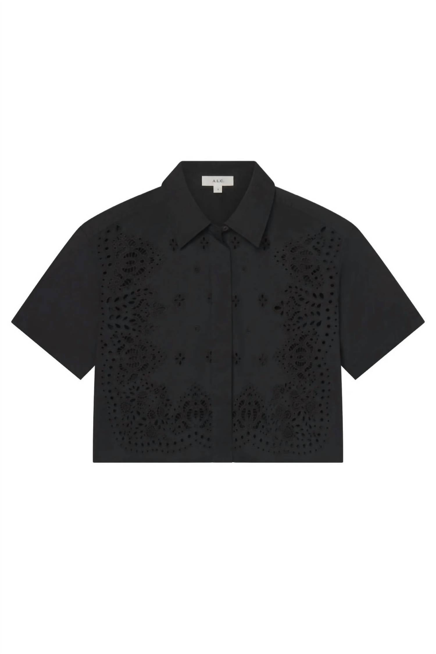 Introducing the A.L.C. Jade Short Sleeve Top, a chic addition to your wardrobe with its stylish boho chic pattern. This women's top is crafted from 100% cotton for a comfortable fit, perfect for spring and special occasions like a holiday party. The design features short sleeves, a neat collar, and convenient button closure, ensuring both style and practicality with pockets. To maintain its pristine condition, dry clean only.