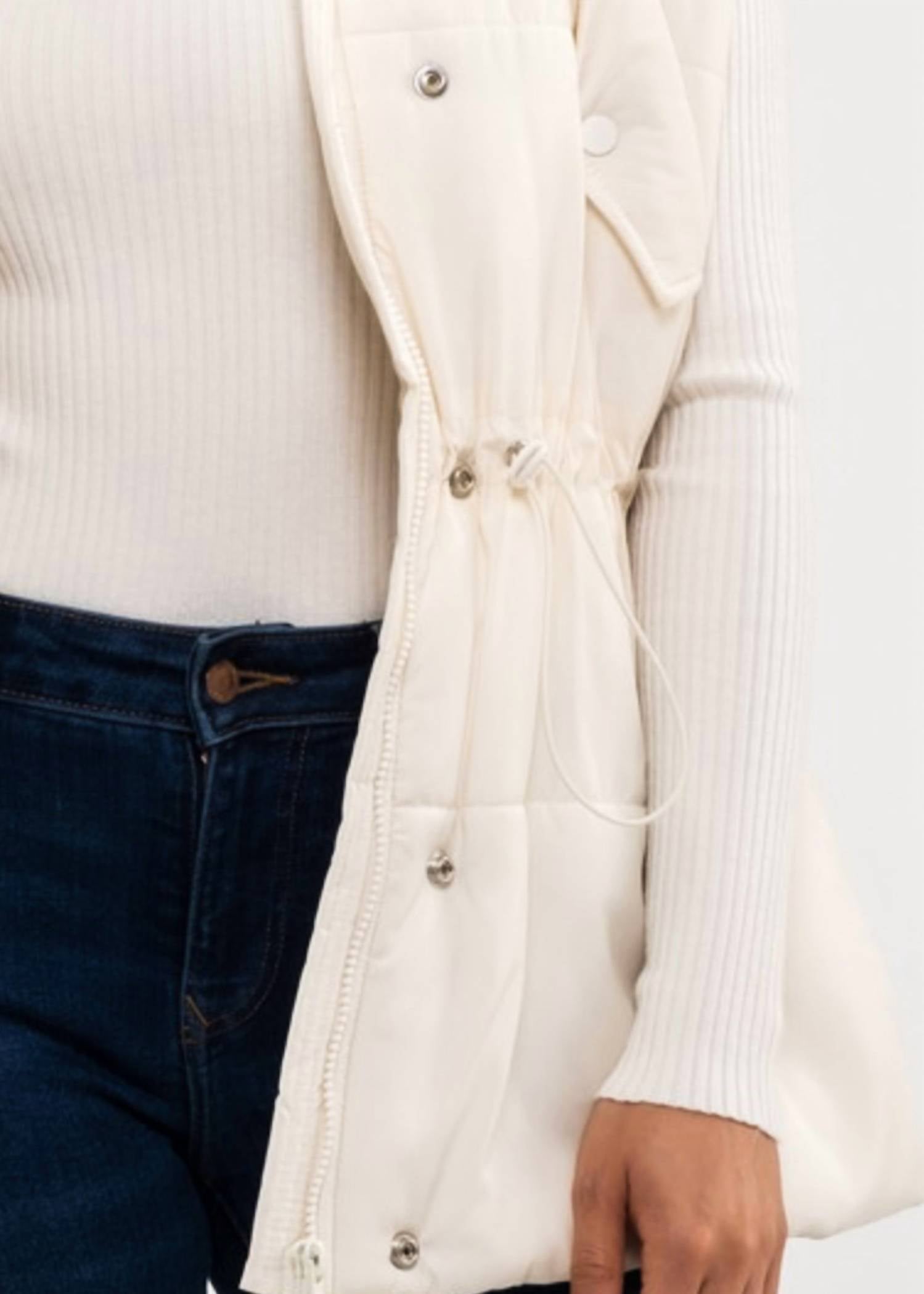 Stay stylishly warm with Blu Pepper's Zip Front Puffer Vest, designed in a crisp white solid pattern. This sleeveless vest features a chic collar and a practical zip closure, making it a versatile addition to your streetwear wardrobe. With a synched-in drawstring waist, it's the perfect travel companion for the colder season, especially for those chic New Year's Eve outings. Ideal for layering, complete with pockets, this piece effortlessly combines functionality with trend-setting style.