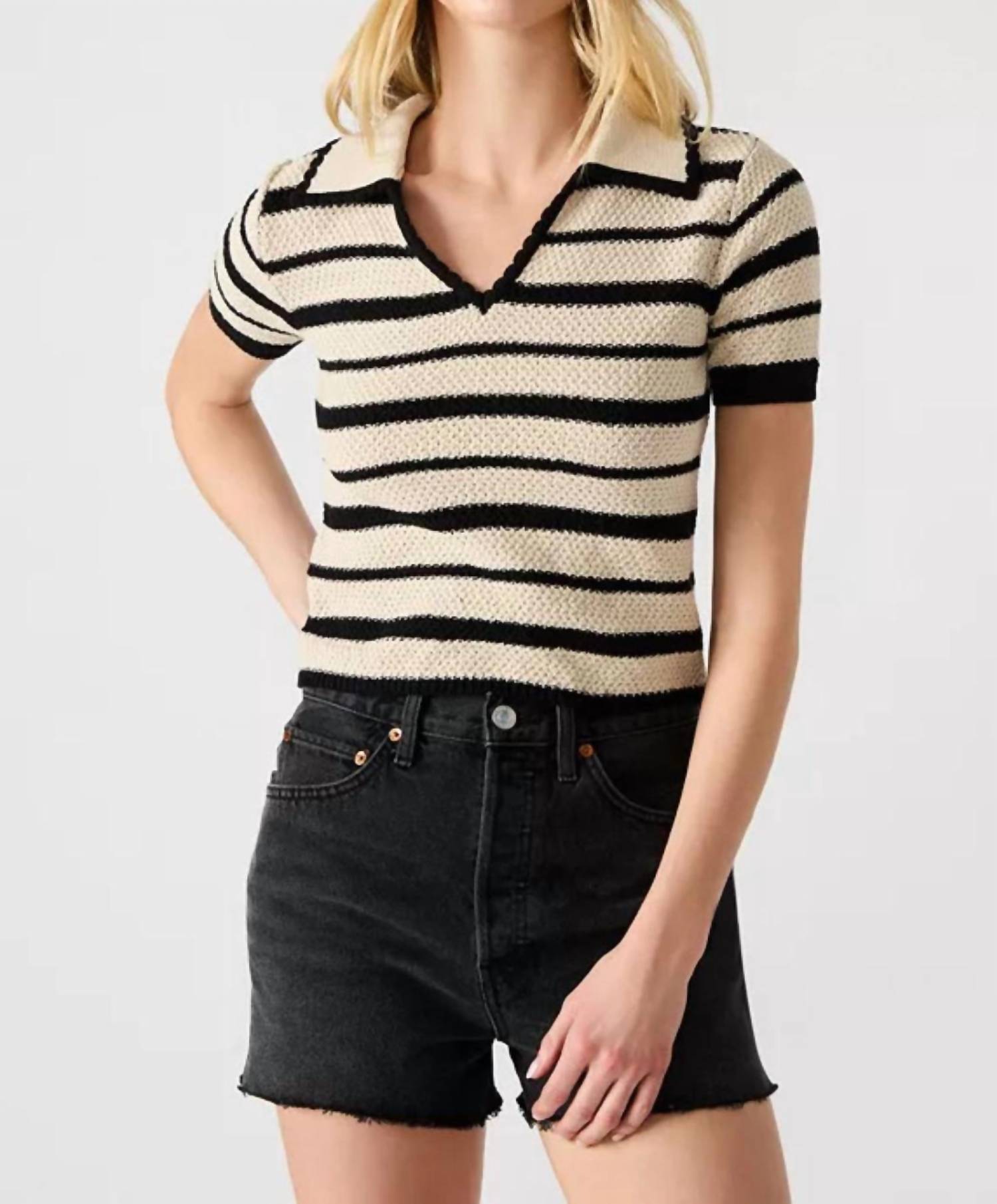 Introducing the Brayden Striped Sweater by Steve Madden, a chic piece that seamlessly combines comfort and style. Crafted from 100% cotton, this short sleeve crochet knit sweater in a classic stripe pattern is perfect for warm-weather layering. It features a spread collar and a pull-on closure for a polished, retro-inspired look. With its breathable fabric, this piece is an ideal choice for minimalist holiday parties and spring gatherings.