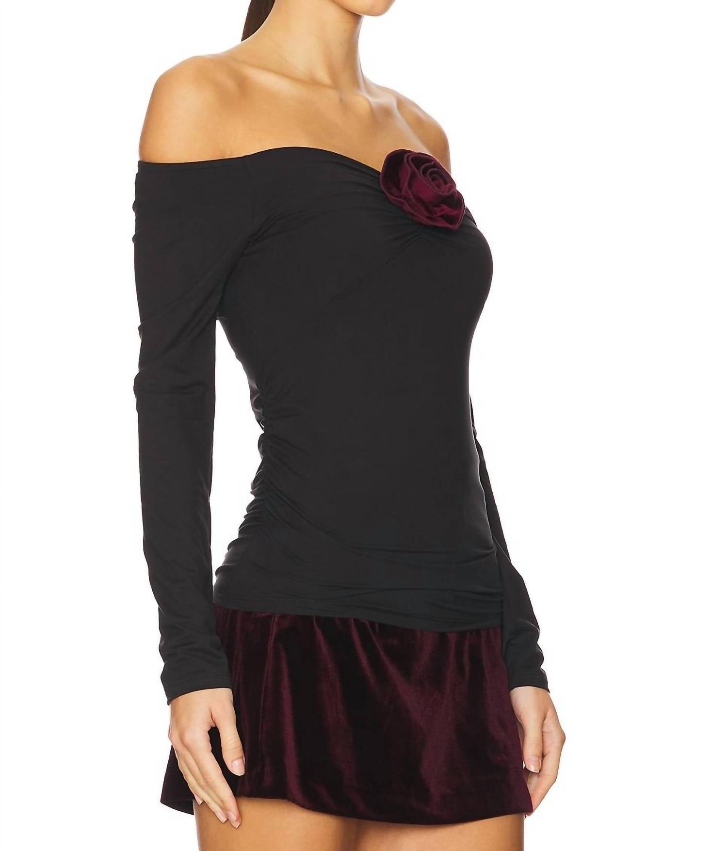 Elevate your wardrobe with the Rosetta Long Sleeve Top from STEVE MADDEN, a perfect blend of fun and elegance. Crafted with long sleeves and a stylish off-the-shoulder neckline, this top is made from recycled polyester and elastane in brushed jersey knit for comfort and style. Measuring approximately 19.25" in length, it features a playful rosette detail on the front, making it an ideal choice for minimalist, vacation-ready outfits. Designed with a pull-on construction for easy wear and hand wash care, it ensures both style and convenience.