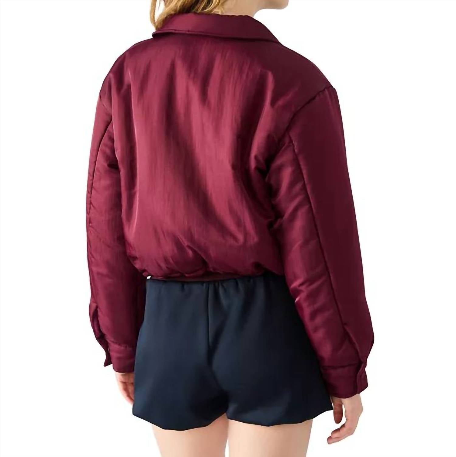 Introducing the Selma Puffer Jacket by STEVE MADDEN, a chic wine-colored jacket perfect for winter vacations. This women's puffer features long sleeves and is crafted from 100% Nylon for a sleek, solid finish. Designed with practical pockets and a convenient snap closure, it provides both style and functionality. Care for this monochrome piece with a simple hand wash for lasting quality.