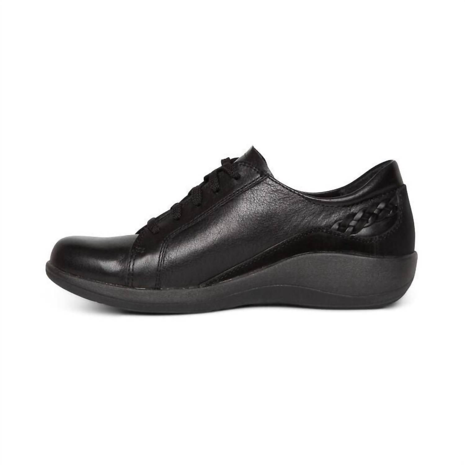 Cute, functional, and comfortable. These sneakers check all the boxes. Introducing the Women's Dana Lace Up Oxford Casual Sneaker by Aetrex, a perfect blend of style and comfort in navy. Crafted from genuine leather, these sneakers feature a lace closure for adjustability and a padded heel for added comfort. The lightweight EVA foam midsole ensures durability, while the rubber outsole offers stability. With a built-in arch support system for increased balance and a removable insole, these sneakers have a low wedge heel height of 1.3".
