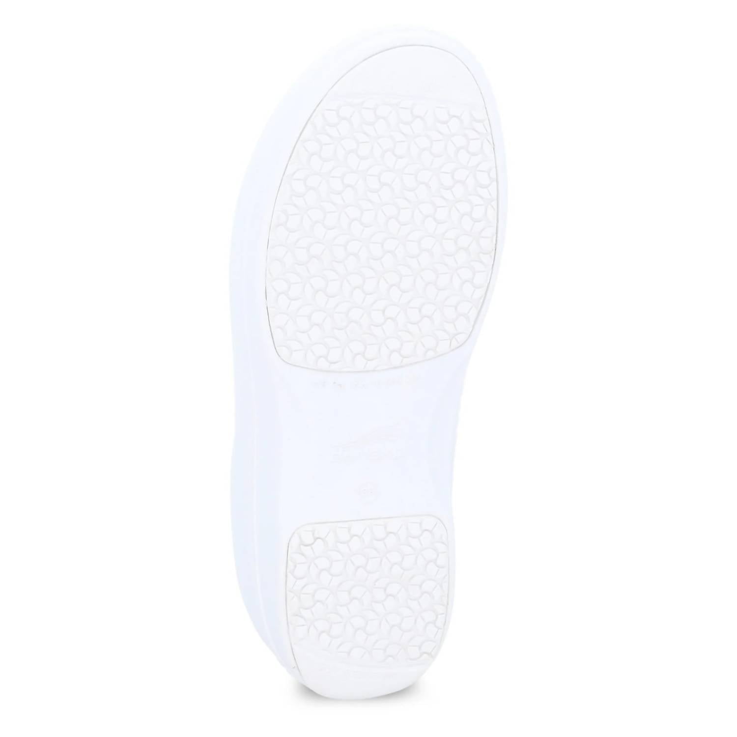 When fashion and function come together seamlessly. Step into style and comfort with the Dansko Women's Kaci Shoes in Molded White. These minimalist sneakers feature lightweight, easy-clean uppers crafted from injected EVA with over 50% I'm green™ bio-based material for exceptional shock absorption. Designed with patented Dansko Natural Arch® Technology, these shoes offer enhanced support and a removable EVA footbed for all-day comfort. The slip-resistant rubber outsole ensures stability on both dry and wet surfaces, making them perfect for a dinner party or any spring occasion.