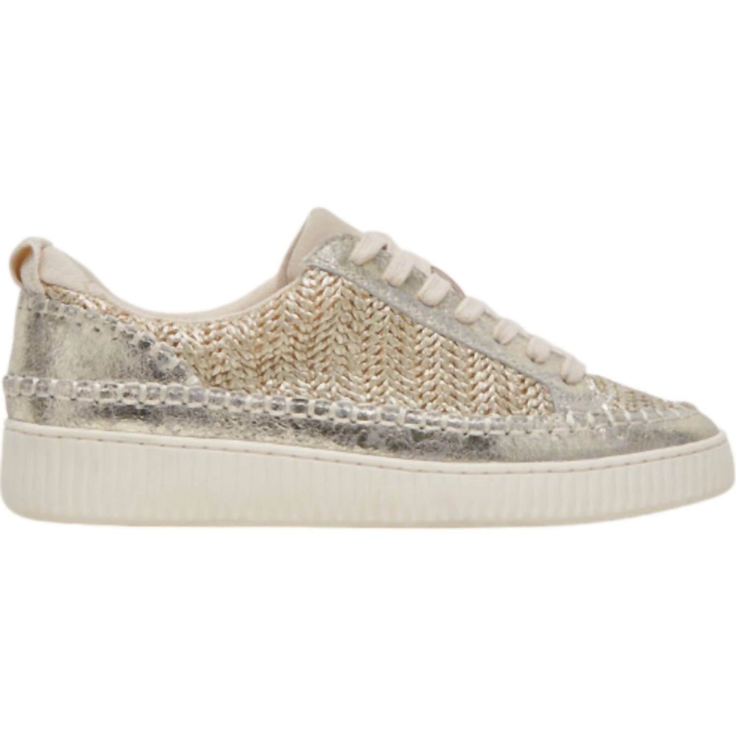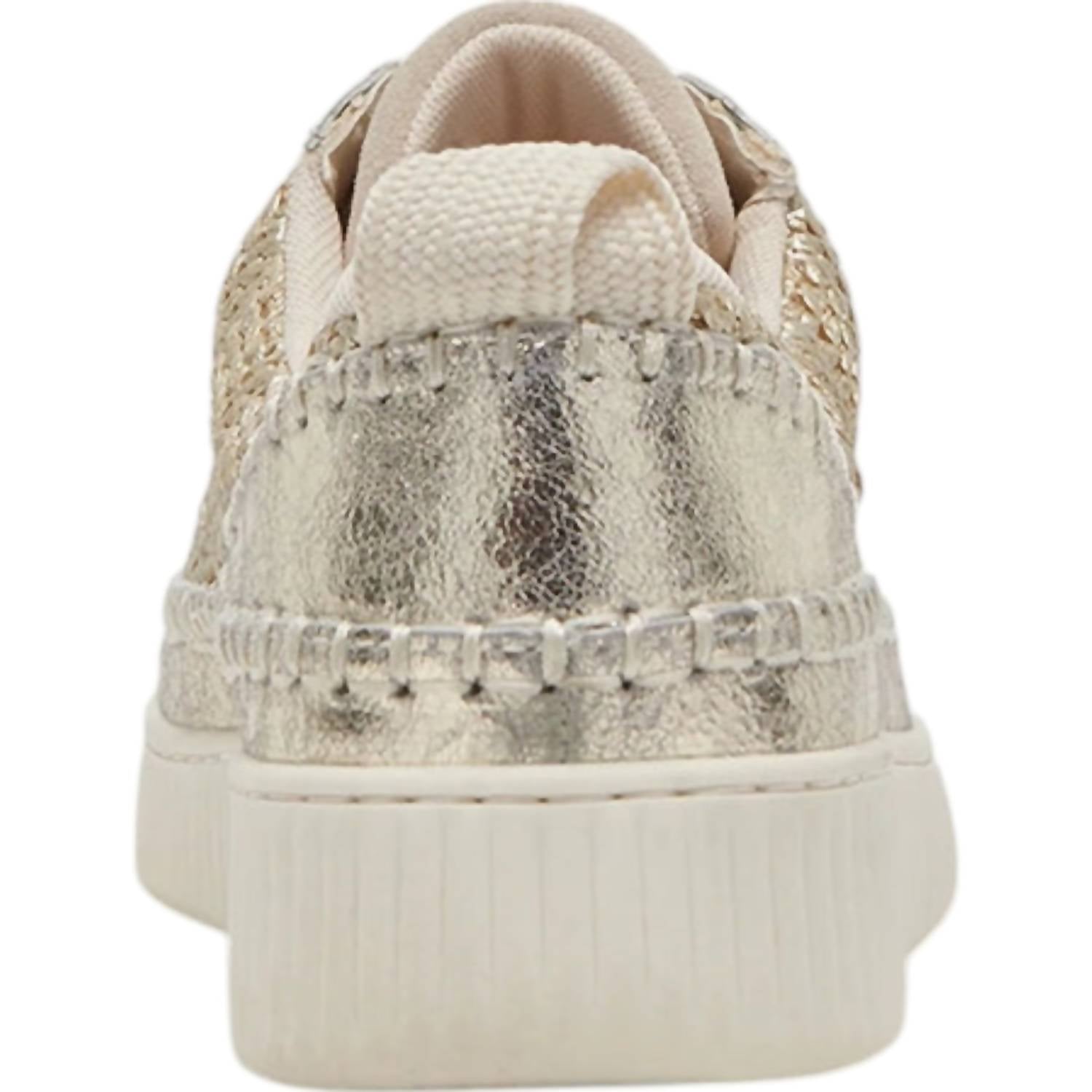 Cute, functional, and comfortable. These sneakers check all the boxes. Elevate your style with the Women's Nicona Sneakers by Dolce Vita, designed for those always on the move. Crafted in a striking gold woven leather, these sneakers blend comfort with a contemporary flair. The platform heel style offers a low norm heel height between 1 1/4" to 2", perfect for all-day wear. With a medium shoe width and round toe shape, these sneakers ensure both style and comfort for every step.