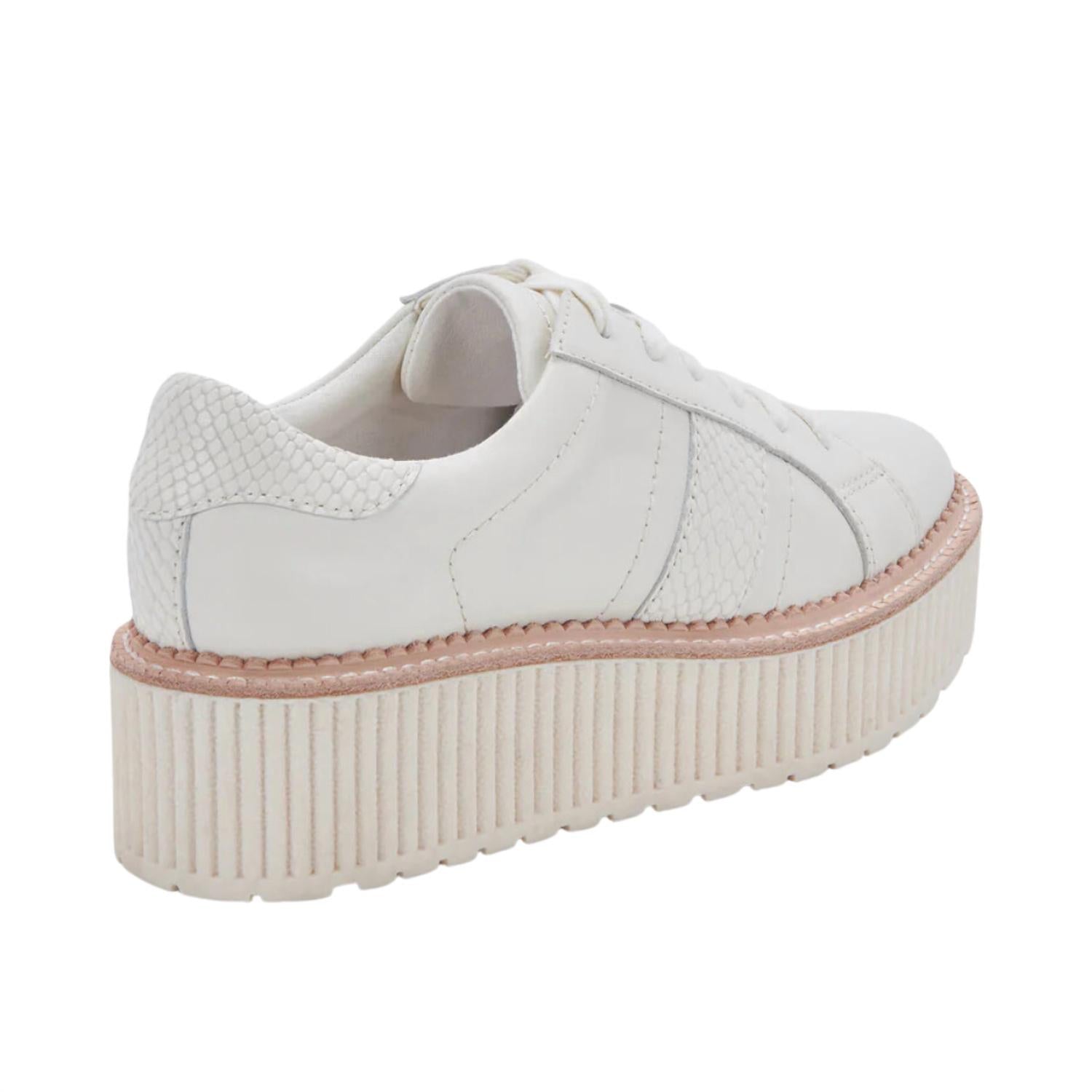 Cute, functional, and comfortable. These sneakers check all the boxes. Experience the perfect blend of style and sustainability with the Women's Tiger Platform Sneakers by Dolce Vita. Featuring a chic leather upper in white, these sneakers are designed for a trendy streetwear look, perfect for your next holiday party. With a 2" platform heel crafted from a recycled synthetic outsole, and a water-based leather alternative lining, these sneakers are ideal for any spring occasion. Step out confidently in eco-friendly footwear that doesn't compromise on style.