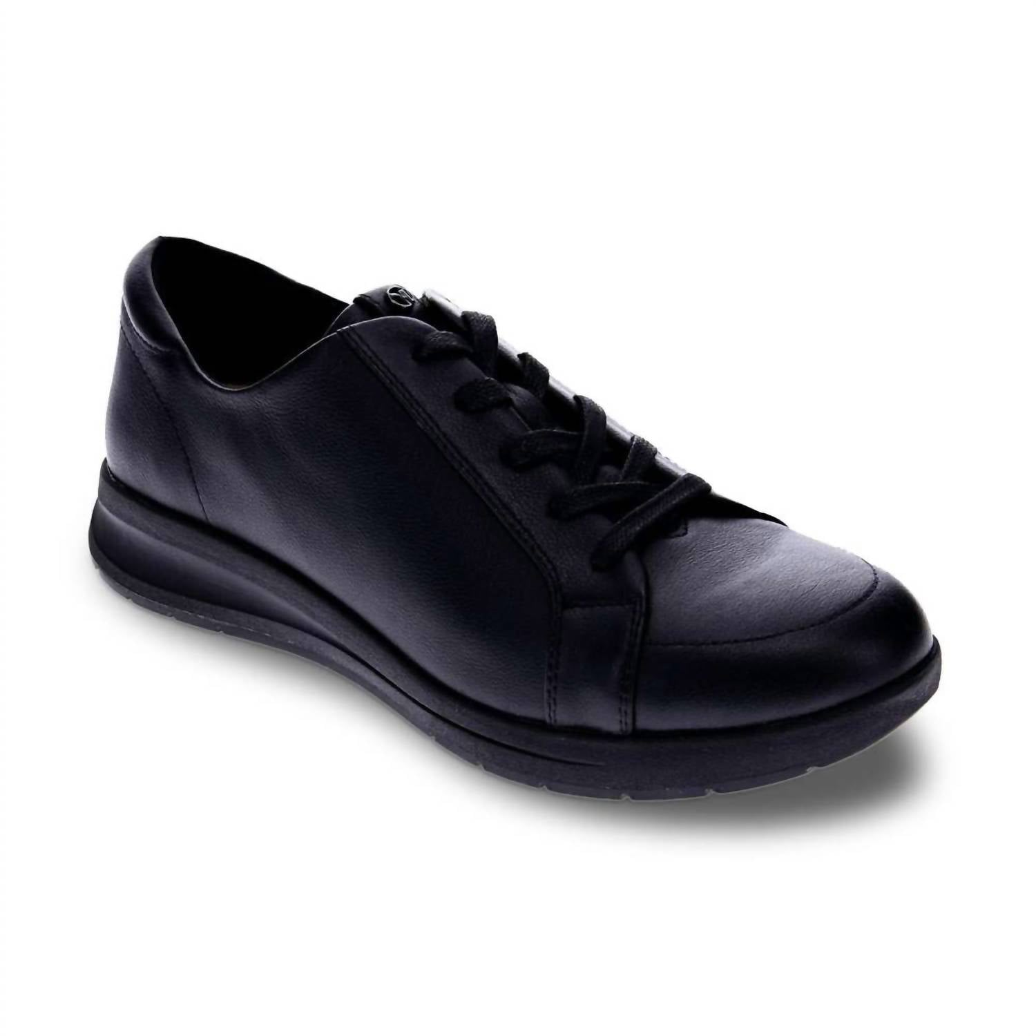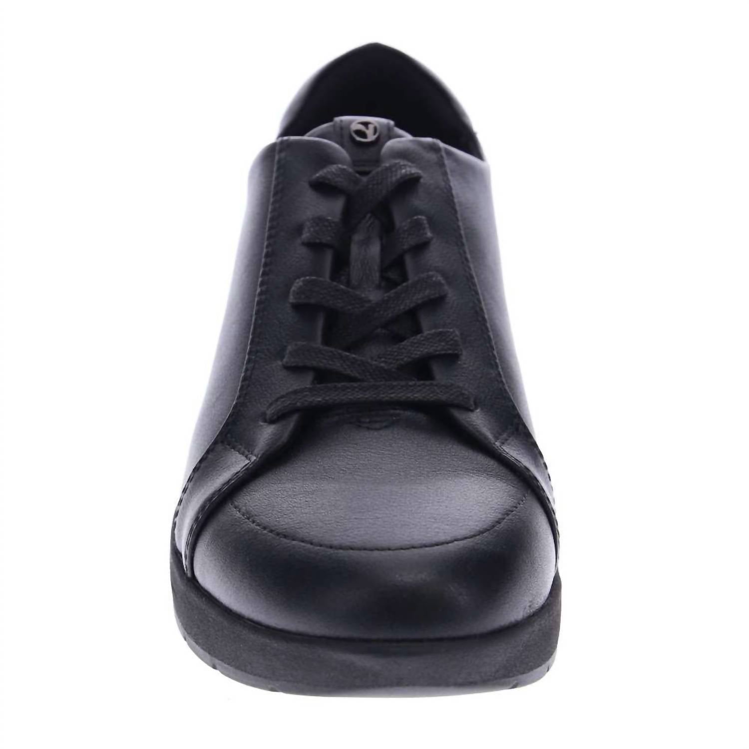When fashion and function come together seamlessly. Step into comfort and style with the Women's Athens Lace-up Comfort Sneakers by Revere, perfect for travel enthusiasts. Crafted from premium leather with a round toe design and a chic black finish, these sneakers feature a removable comfort footbed with built-in arch support for orthotic customization. The slip-resistant outsole and wedge heel ensure a secure and fashionable fit, while maximum adjustability in the upper adds tailored convenience. Care is simple: clean with a damp cloth and air dry under indirect sunlight to maintain their sleek look.