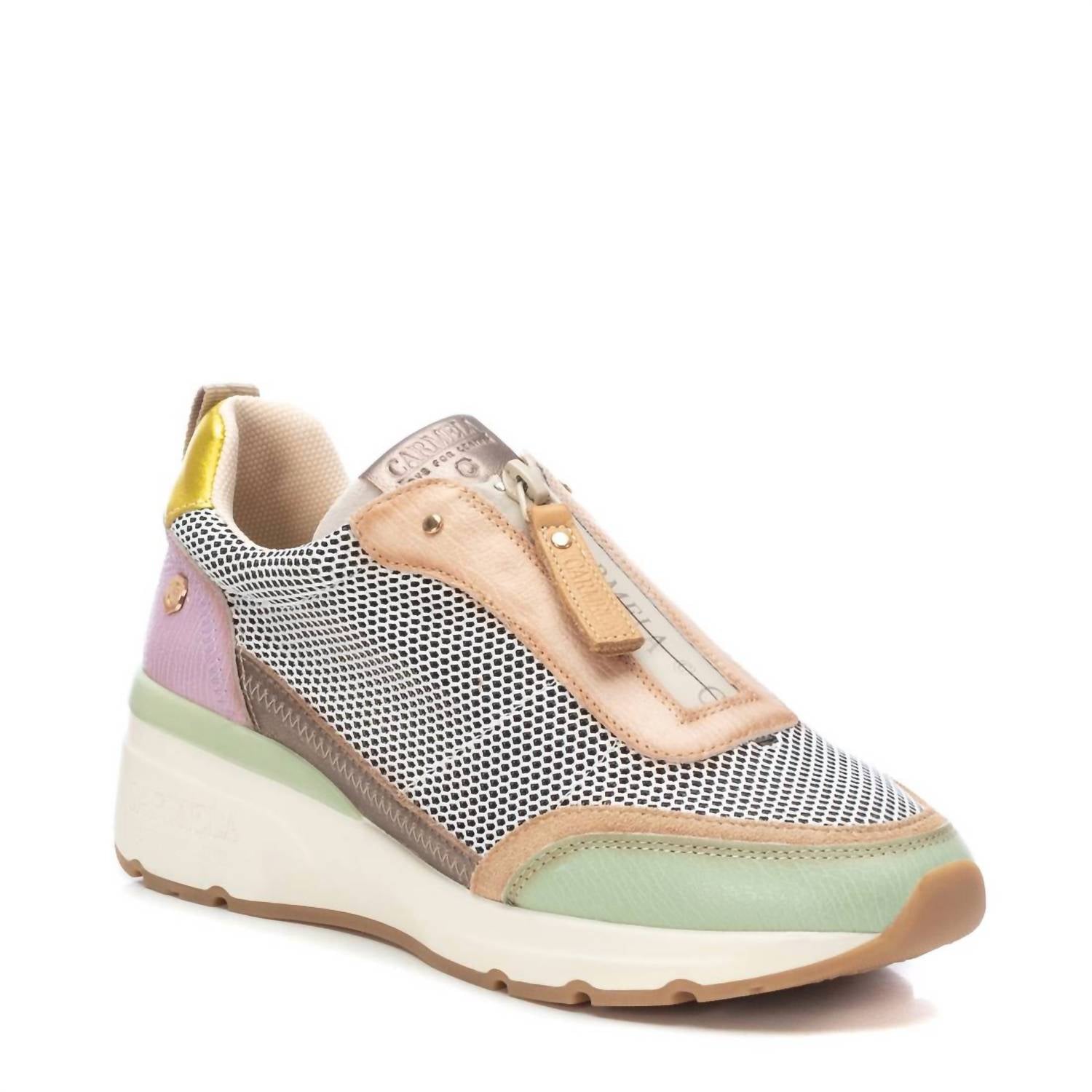 Get your daily steps in with these adorable sneakers. Step into style and comfort with the Xti Carmela Collection Women's Leather Trainers in an eye-catching aqua hue. Crafted from high-quality leather, these sneakers seamlessly blend a mix of colors with simple yet elegant details, including side and toe grille accents. They are designed with a wedge heel, contributing to a low, comfortable profile, and feature a non-slip rubber sole for added stability. Ideal for any occasion, these trainers offer the perfect combination of durability and luxury.