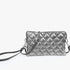 Chic accessory in elegant graphite. Made from durable nylon. Features two major compartments, a middle zipper pocket, two slip pockets, and six cardholders. Offers exceptional convenience with a top zipper closure, detachable wristlet strap, and adjustable crossbody shoulder strap. Dimensions: 9” L x 1.5” D x 5” H.