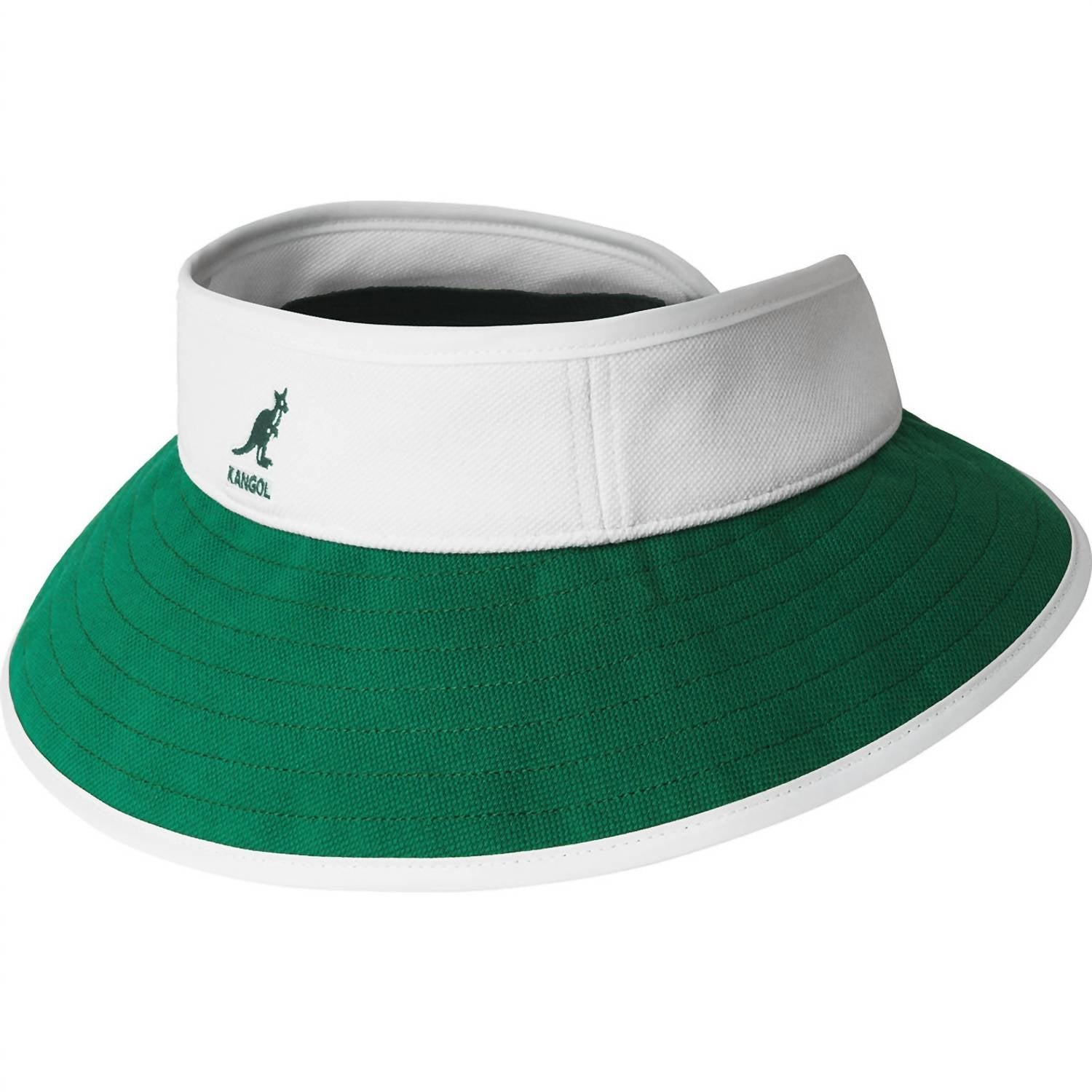 Block the sun in style with this adorable hat that will complement any outfit. Expertly crafted to elevate your style while providing a delightful touch of personality. This golf sun visor combines style and functionality, crafted from lightweight color-blocked pique fabric in playful color combinations. It features classic kangaroo embroidery at the front, a double loop on the side for holding a golf tee or pencil, and custom golf embroidery at the back. An adjustable strap ensures a comfortable fit, making it a perfect accessory for both golf enthusiasts and lovers of preppy fashion.