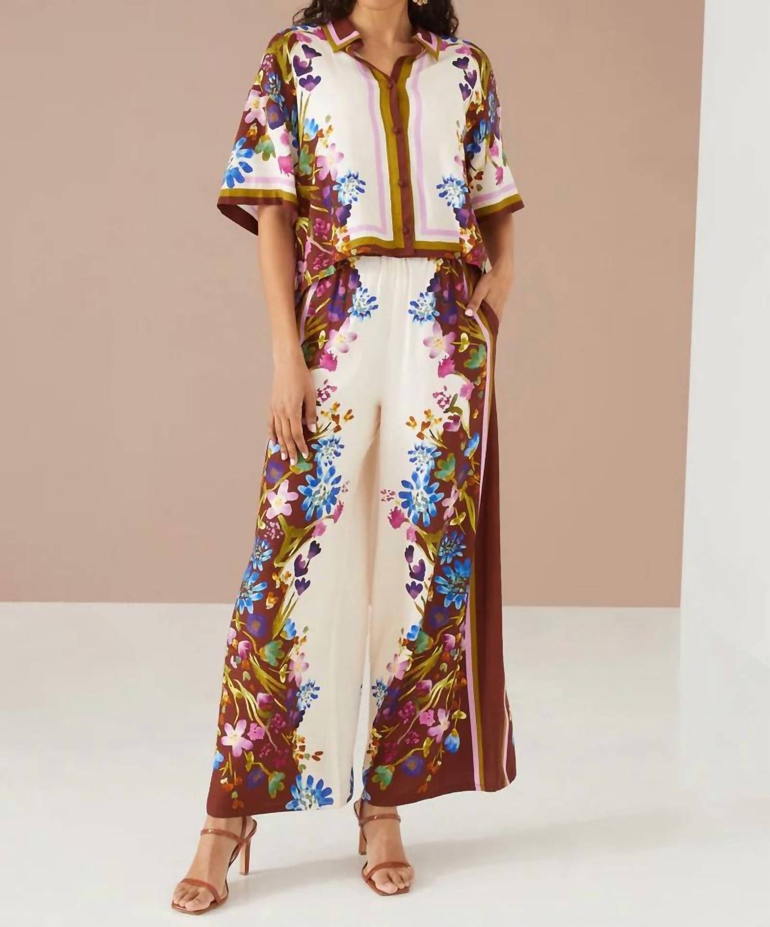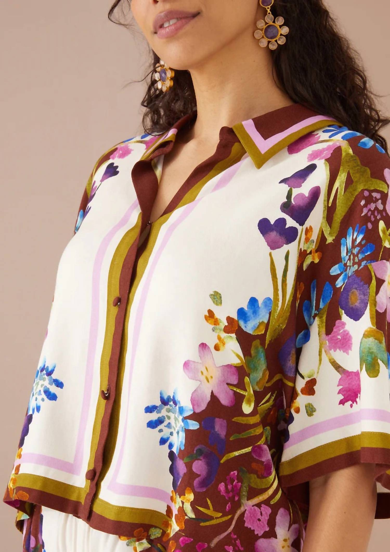 Introducing the Roxy Shirt by Alivia, a chic addition to your wardrobe with its short sleeves and classic collared design. Crafted in India from 100% tencel twill for a soft, luxurious feel, it features a delicate prairie floral print perfect for spring. With a convenient button closure, this ethically made blouse exudes boho chic style. Easy to care for, simply machine wash on a cool, delicate cycle and line dry.