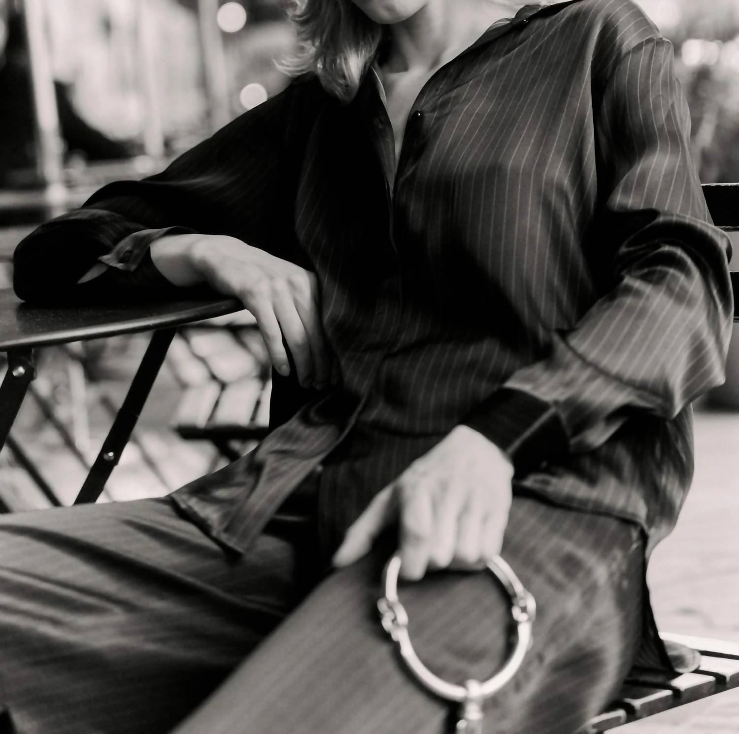 Pair this with your favorite jeans and slides for your next girls night out. The Sophie Long Sleeve Blouse by Catherine Gee exemplifies timeless sophistication with a sleek navy pinstripe pattern. Crafted from 100% silk, this blouse drapes beautifully and transitions seamlessly from day to evening. It features a button-front closure and a point collar, complemented by long sleeves with button cuffs for added polish. Handle this luxurious garment with care.