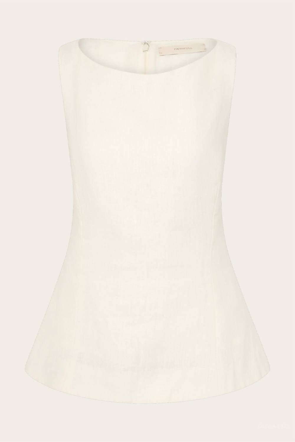 Meet the Ana Boat Neck Top by FAITHFULL THE BRAND, a chic addition crafted for the preppy style enthusiast. This sleeveless blouse is made from a luxurious 100% European Flax linen, originating from Indonesia. It features a flattering boat neckline and a peplum-style hem that cinches at the waist, providing a feminine silhouette. Easy to care for, simply hand wash and line dry. Ideal for a vacation wardrobe in classic white, complete with a convenient zip closure.