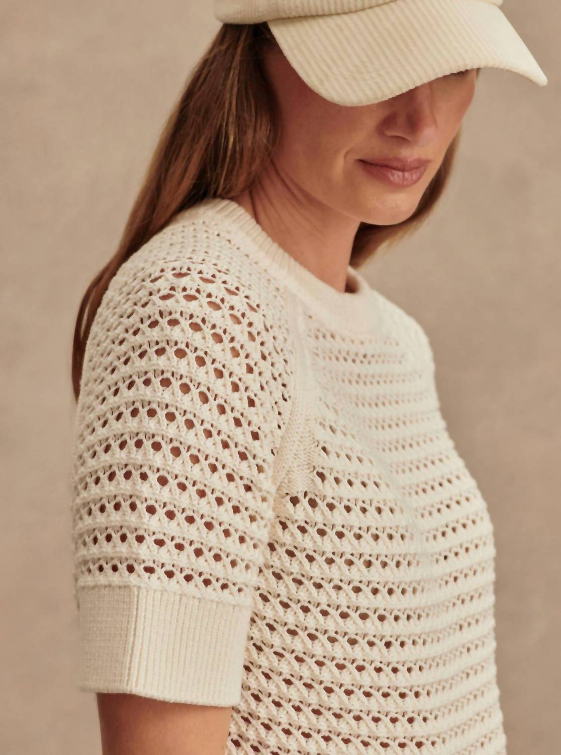 Introducing the Alva Knit Top by VARLEY, crafted for a perfect blend of comfort and style. Featuring short sleeves and made from 100% cotton, this breathable tee boasts intricate crochet detailing and a versatile crew neck design. Designed with a standard fit and dropped armholes, it comes in an elegant Egret hue ideal for a boho-chic summer vibe. Closure: Pull on. Care: Machine wash cool, do not bleach, iron on low, dry flat, and reshape whilst damp.