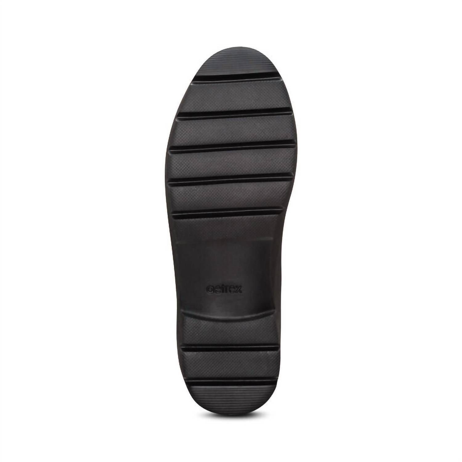 Say hello to the perfect, most versatile boot. The ankle height makes this style easily transition from day to night. Wear them with your favorite skinny jeans and tee for a more laid back look, or pair them with your favorite mini dress and jacket for a night out on the town. Discover the Women's Hannah Arch Support Boots by Aetrex in a stunning cognac hue, where style and support unite beautifully. These boots feature a sophisticated adjustable cross ankle quarter strap and a convenient medial side zip for a snug fit. Crafted from premium weatherproof leather with a sturdy rubber outsole, these ankle boots boast a low block heel height of 1.25 inches for a comfortable stride. With built-in Aetrex Orthotic System, they offer unparalleled arch support and pressure relief, enhancing your comfort on every urban and outdoor adventure.